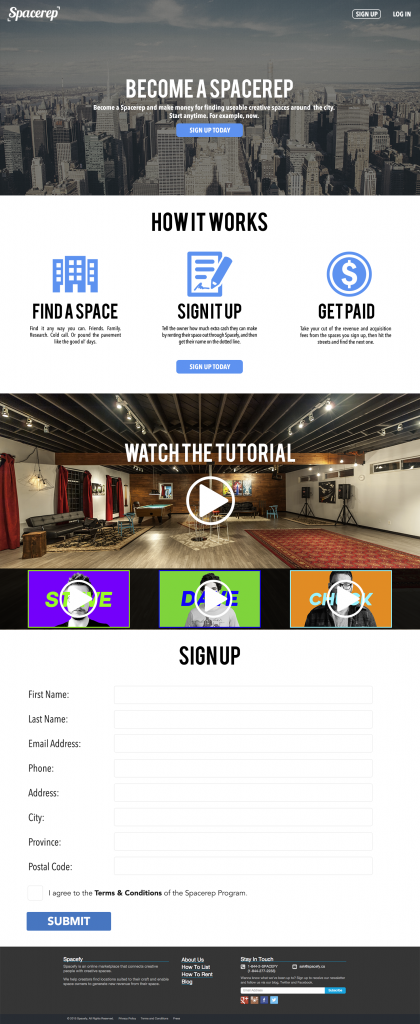 In addition a series of videos were created as promotional tools to help drive prospective Spacereps to sign up.